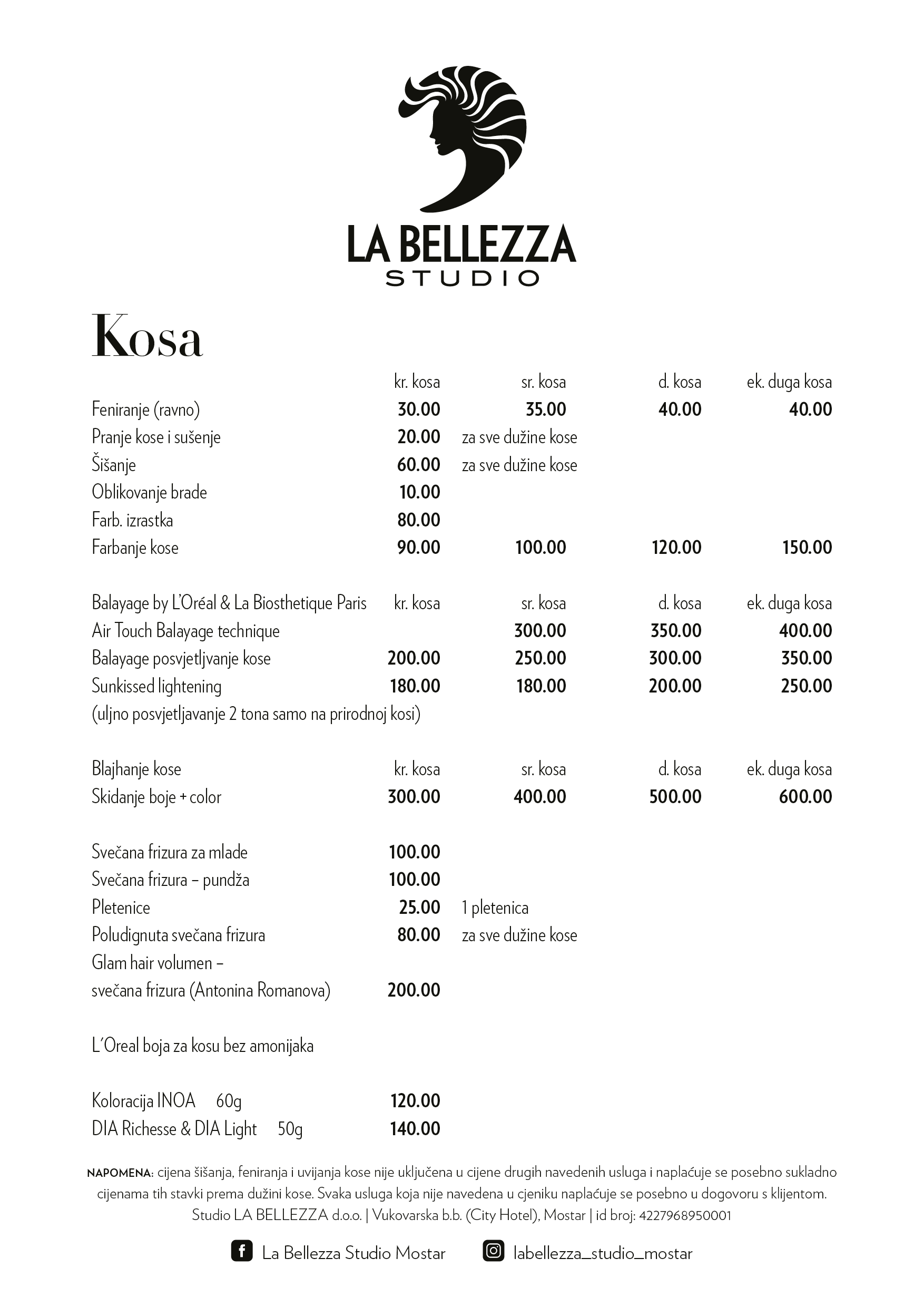 Također, La Bellezza nudi usluge hair stylinga i šminkanja na terenu (za vjenčanja, muzičke i filmske setove).