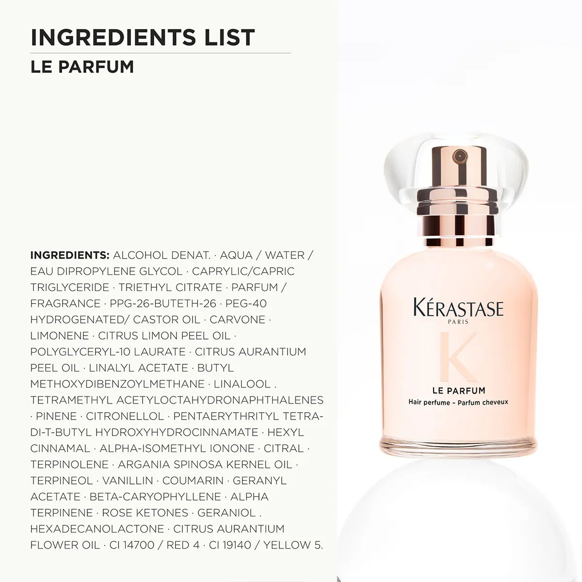 Obogaćen prirodnim uljima, Gloss Absolu Le Parfum njeguje kosu, Čineći je mekom, svilenkastom i sjajnom, bez osjećaja otežanosti.